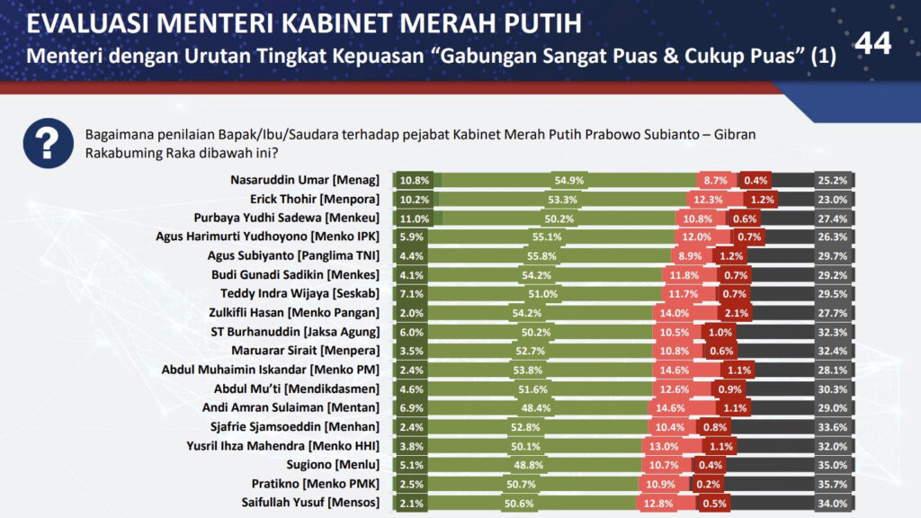 Jakarta (Kemenag) — Menteri Agama Nasaruddin Umar mendapat apresiasi kinerja tertinggi dari publik berdasarkan survei Poltracking Indonesia, di antara 52 pejabat setingkat Menteri yang tergabung dalam Kabinet Merah Putih. Hasil survei dengan tema “Evaluasi Satu Tahun Kinerja Pemerintahan Prabowo-Gibran” tersebut dirilis hari ini, Minggu (19/10/2025) dan dapat diakses melalui channel Youtube Poltracking TV. Ini merupakan survei […]