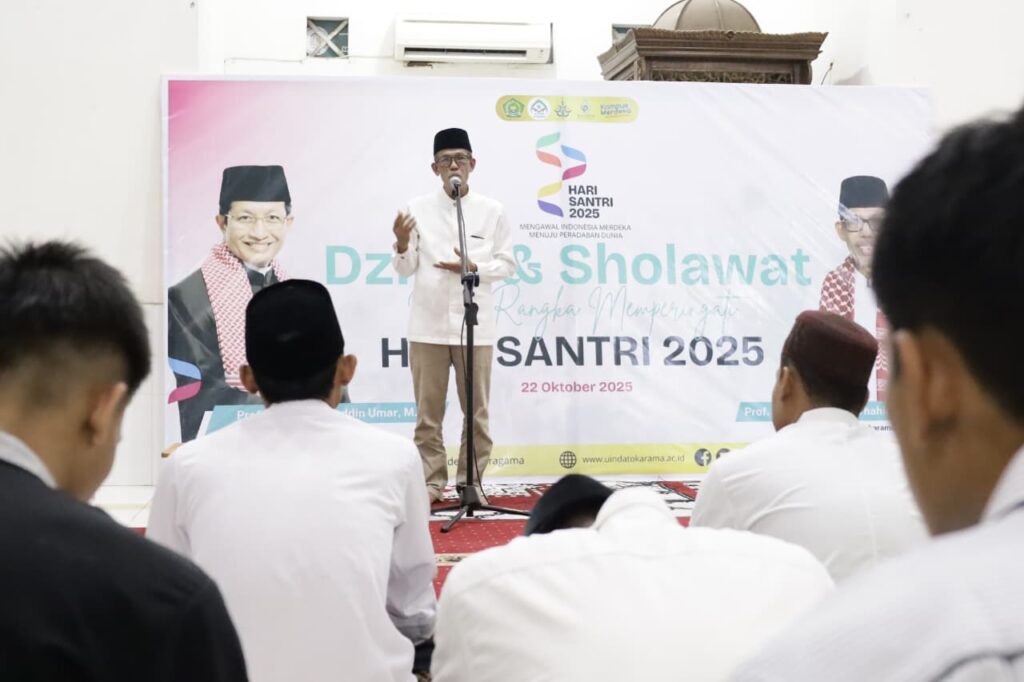 Palu, 21/10 (UIN Palu) – Universitas Islam Negeri (UIN) Datokarama Palu dan Pimpinan Wilayah Nahdlatul Ulama (PWNU) Sulteng bersinergi menggelar Istighosah dan Doa Bersama dalam rangka memperingati Hari Santri Nasional (HSN) 2025. Istighosah dan Doa Bersama yang berlangsung di Masjid Al-Abrar UIN Datokarama, pada Senin malam (20/10), diikuti oleh dosen, tenaga kependidikan, santri, pengurus NU […]