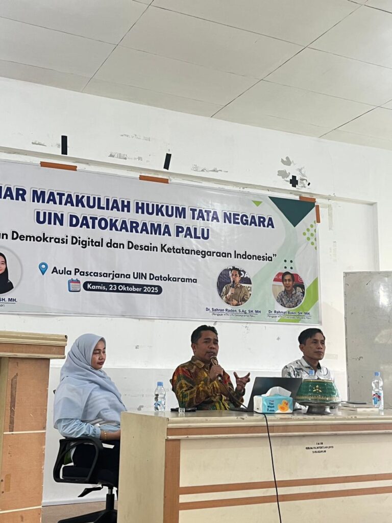 Palu, 23/10 (UIN Palu) – Akademisi Universitas Islam Negeri (UIN) Datokarama Dr Sahran Raden sekaligus Pakar Hukum Tata Negara mengemukakan bahwa platform digital yang terus berkembang saat ini memberikan pengaruh terhadap kekuasaan. Dr Sahran Raden dihadirkan oleh Jurusan Hukum Tana Negara Islam (HTNI) Fakultas Syariah UIN Datokarama sebagai narasumber dalam seminar mata kuliah hukum tata […]