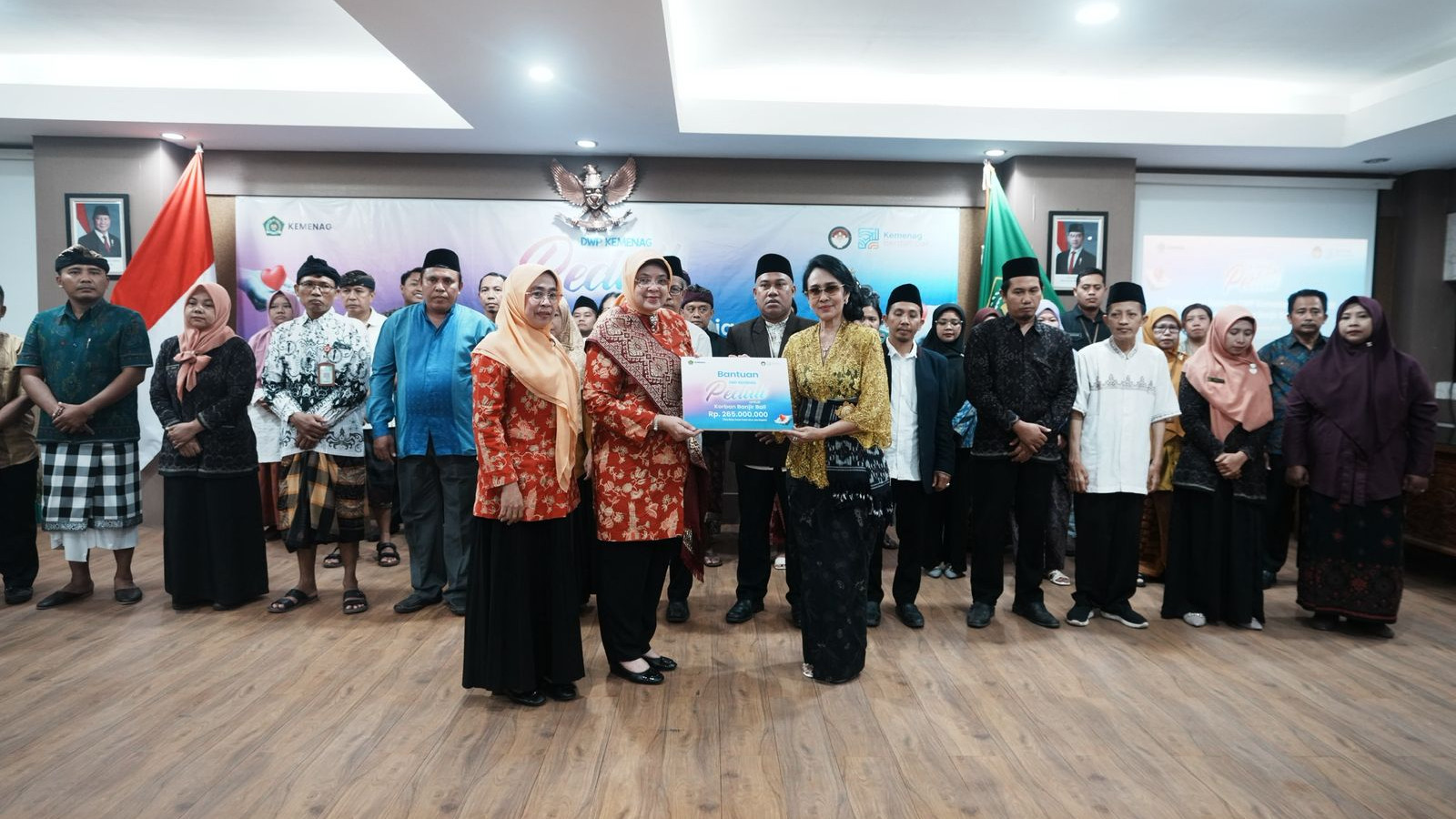 Penyerahan bantuan ini disampaikan Penasihat DWP Kemenag Helmi Nasaruddin Umar beserta jajaran pengurus DWP Kemenag Pusat. Pemberian secara simbolis dilaksanakan di Aula Kanwil Kemenag provinsi Bali, Kamis (25/9/2025).