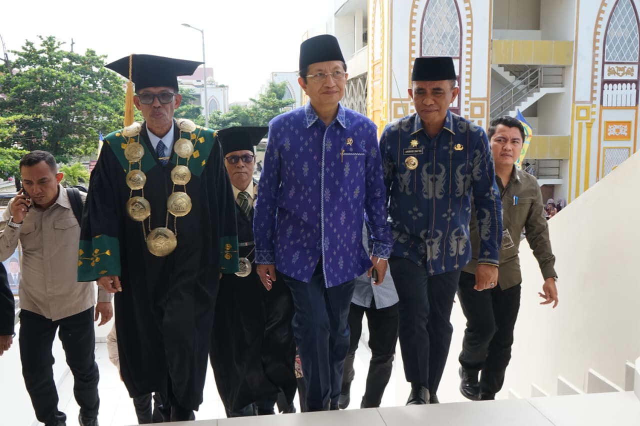 Menag Nasaruddin Umar melakukan kunjungan kerja ke UIN Datokarama dalam rangka menghadiri dan menyampaikan orasi ilmiah pada Wisuda ke-45 Sarjana, Magister, dan Doktor, yang telah berlangsung pada Minggu (2/11).