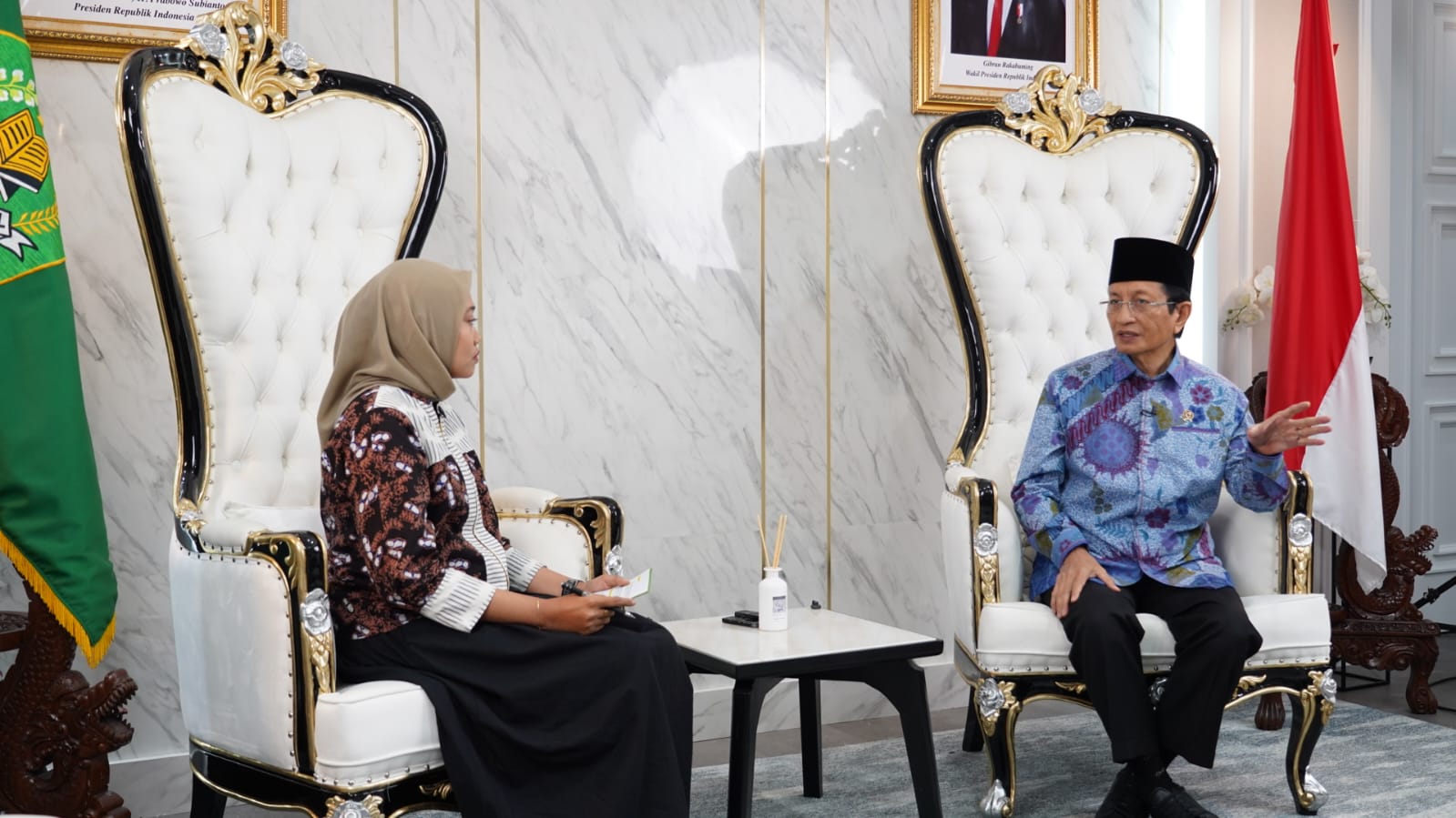 Jakarta (Kemenag) – Menteri Agama Nasaruddin Umar, menegaskan komitmen Kementerian Agama (Kemenag) untuk menjadikan ekoteologi sebagai gerakan nasional yang mampu menyadarkan masyarakat terhadap pentingnya merawat lingkungan, dalam wawancaranya bersama Republika di Kantor Kementerian Agama, Jakarta.
