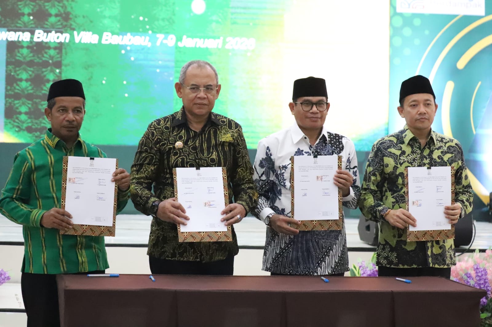 Kegiatan ini juga dirangkaikan dengan penandatanganan nota kesepahaman penyelenggaraan penerjemahan Al-Qur’an ke dalam Bahasa Buton serta peluncuran Kota Wakaf.