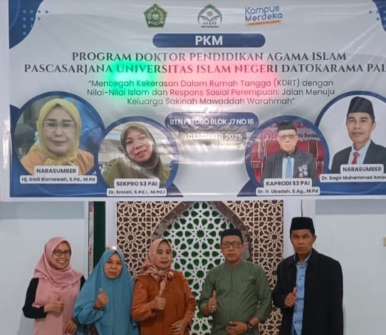 Palu, 6/12 (UIN Palu) – Program Studi (Prodi) Pendidikan Agama Islam (PAI) Pascasarjana Starata Dua (S3) Universitas Islam Negeri (UIN) Datokarama melaksanakan program Pengabdian Kepada Masyarakat (PKM) di Kelurahan Petobo, Kota Palu, yang difokuskan pada pembangunan ketahanan keluarga untuk mencegah Kekerasan Dalam Rumah Tangga (KDRT).