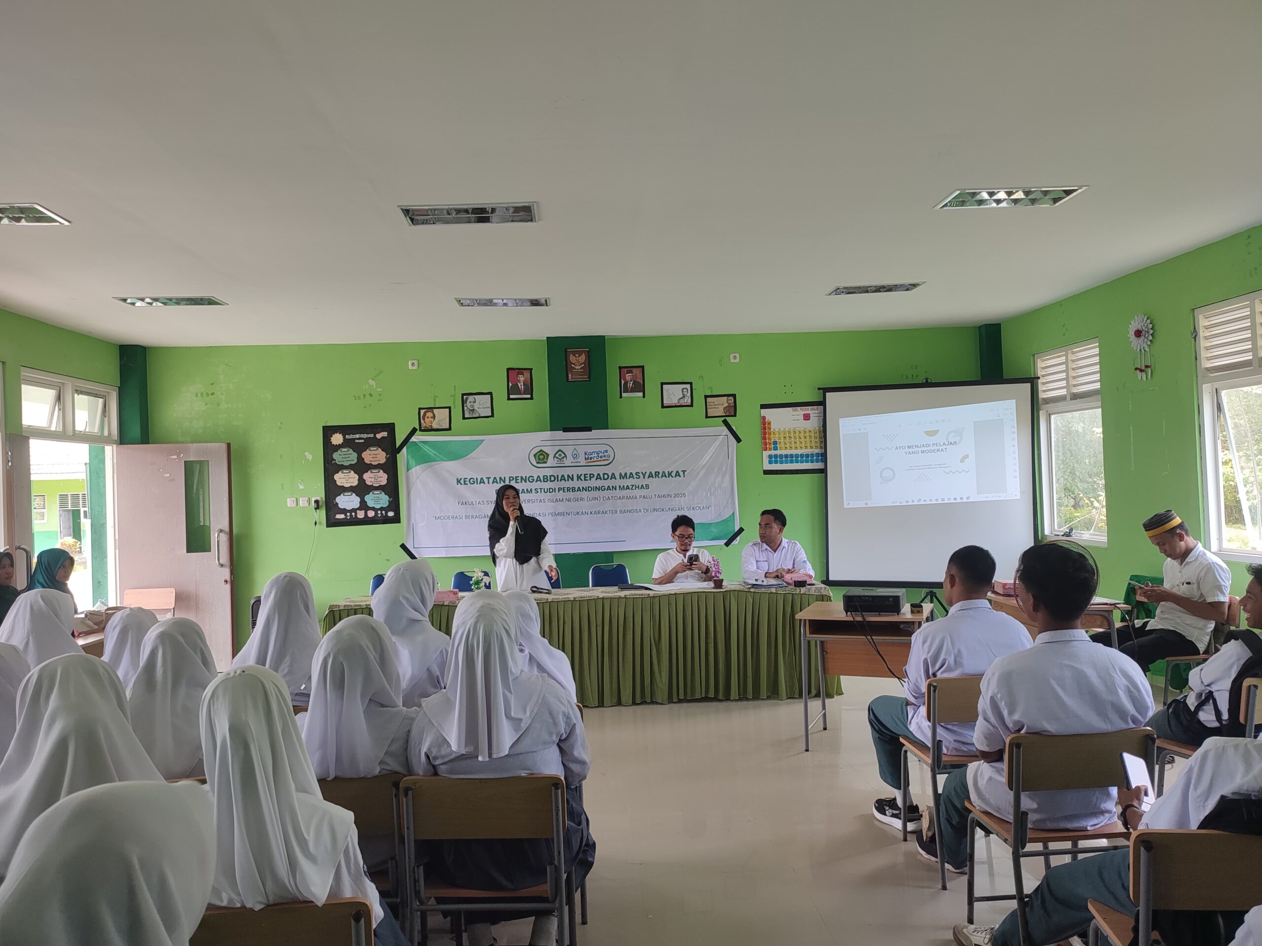 Kegiatan kemudian dilanjutkan dengan pemaparan materi mengenai pentingnya moderasi beragama di lingkungan sekolah yang disampaikan oleh tim dosen Prodi Perbandingan Mazhab. Guru dan siswa MAN Donggala tampak antusias mengikuti sesi tersebut yang dikemas secara edukatif dan dialogis.
