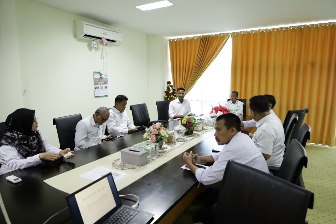 Rektor Profesor Lukman Thahir hadir dan menyampaikan arahan dalam rapat koordinasi kehumasan lingkup UIN Datokarama, yang berlangsung di Ruang Kerja Rektor.