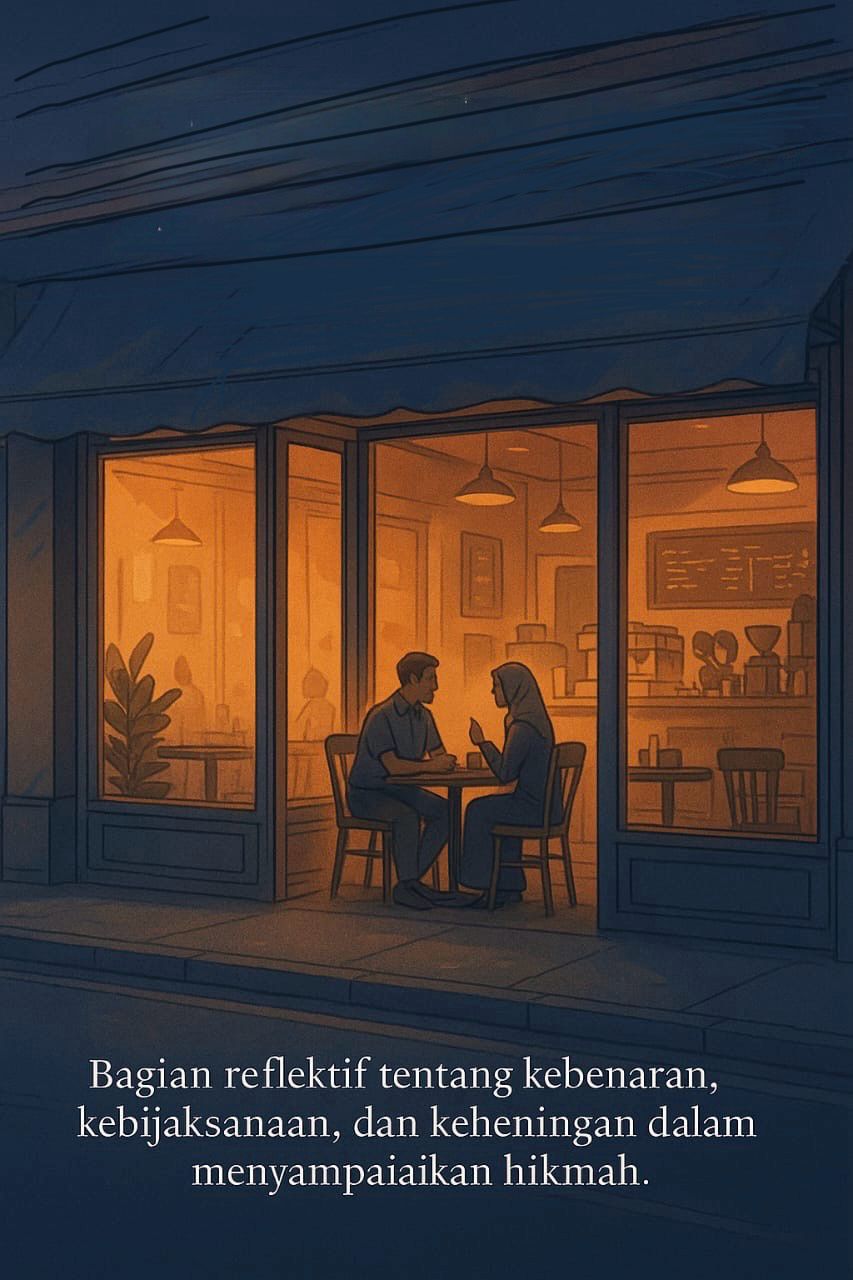 Safira tersenyum samar. “Sepertinya mereka sedang mencari kemenangan, bukan kebenaran, Guru.” Sang guru menatap kopi di depannya, lalu menjawab, “Benar, Fira. Imam Syafi‘i pernah berkata, ‘Saat kamu menyampaikan kebenaran, kamu akan mendapat dua reaksi: orang cerdas akan merenung, sedangkan orang bodoh akan tersinggung.’ Dan aku baru saja menyaksikan kebenaran itu menegaskan dirinya.”