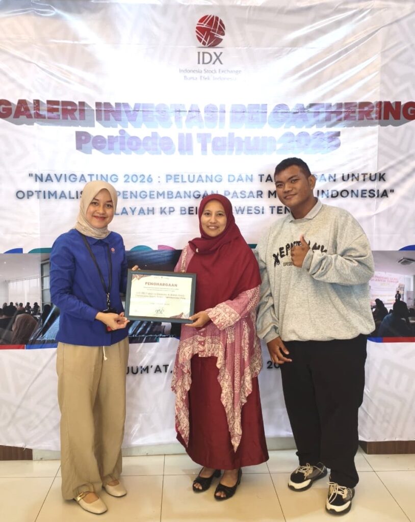 Palu (UIN Datokarama) – Kelompok Studi Pasar Modal (KSPM) Fakultas Ekonomi dan Bisnis Islam (FEBI) Universitas Islam Negeri (UIN) Datokarama Palu berhasil meraih prestasi gemilang dengan menyabet Juara I Kategori Galeri Investasi Teraktif 2025 Se-Sulawesi Tengah. Penghargaan bergengsi ini diserahkan langsung oleh Kepala Bursa Efek Indonesia (BEI) Regional Sulawesi Tengah, Ibu Putri Ariana, dalam acara […]
