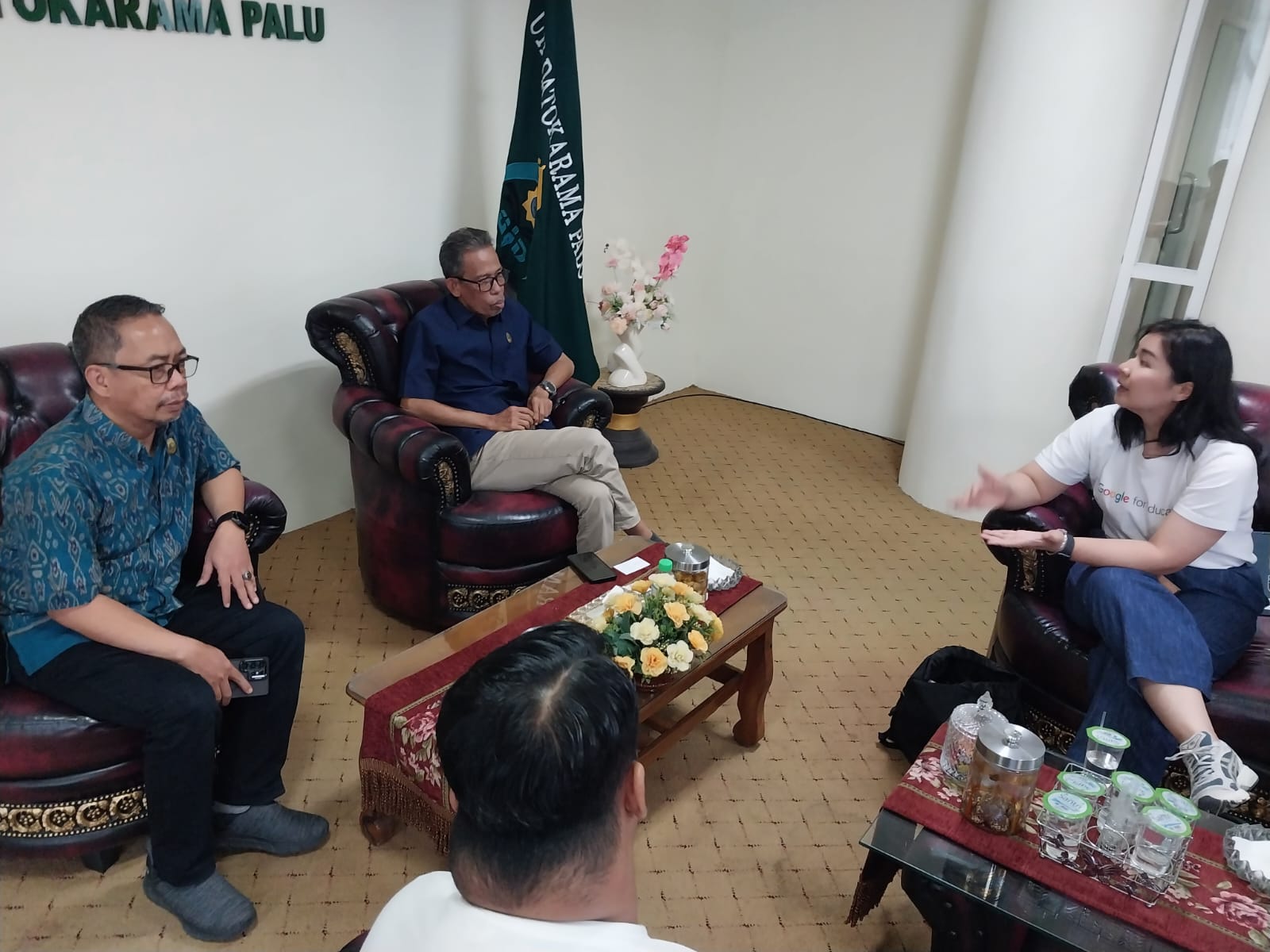 Rektor UIN Datokarama Profesor Lukman Thahir menerima kunjungan silaturahim Tim Google For Education dan Tim Telkom, di ruang kerjanya, Rabu. Dalam silaturahim itu Tim Google For Education memperkenalkan beberapa produk teknologi Google yang menopang percepatan digitalisasi layanan pendidikan UIN Datokarama.